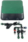 Zestaw do automatycznego nawadniania 200 m2, 2 sekcje, elektrozawór Master, filtr, manometr, szybkozłączką do kompresora, odpowietrznik, studzienka Jumbo