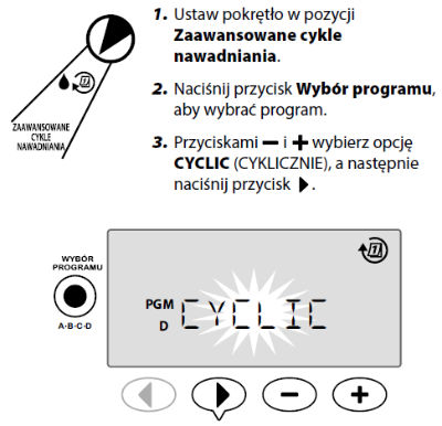 siebie wszystkich łącznych czasów działania pozwala określić czas trwania całego cyklu nawadniania.