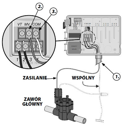 Podłączanie zaworu głównego