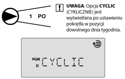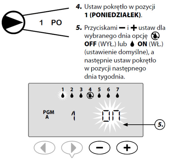 Jest to domyślna opcja programu, a zarazem stosowana najczęściej. Można ustawić nawadnianie w określone dni tygodnia poprzez wybranie opcji WŁ.