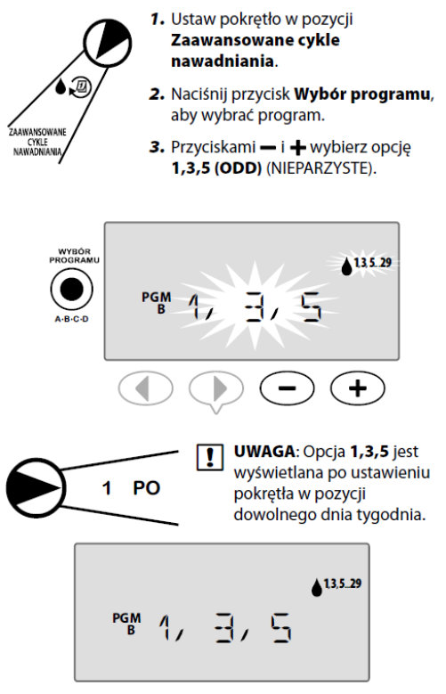 Ustawienie nawadniania we wszystkie dni NIEPARZYSTE, na przykład 1, 3, 5...29.