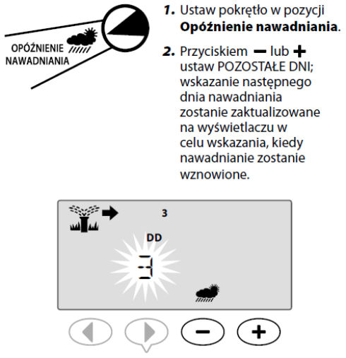 • Funkcja opóźnienia nawadniania (opóźnienie w przypadku deszczu) może uniemożliwiać nawadnianie przez maksymalnie 14 dni. Po upływie tego okresu