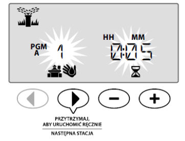 4. Naciśnij przycisk ► Następna stacja, aby anulować nawadnianie przez aktywną stację i przejść do następnej stacji w programie.