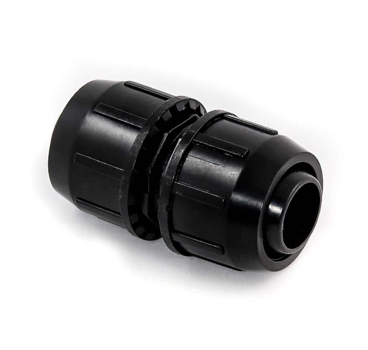 Przelot skręcany typu QJ do rur PE średnicy fi 32 mm. Przelot QJ pozwala na połączenie dwóch odcinków rury PE w tym samym rozmiarze.