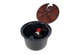 Studzienka poboru wody z zaworem 3/4 cala w wersji z PEŁNĄ pokrywą z dodatkową klapką. Pełna pokrywa studzienki zabezpiecza jej wnętrze przed dostaniem się ślimaków, liści, igieł z drzew itp. Stanowi również dodatkową ochronę zaworu przed niską temperaturą oraz pełni funkcję dodatkowej ozdoby każdego ogrodu.
