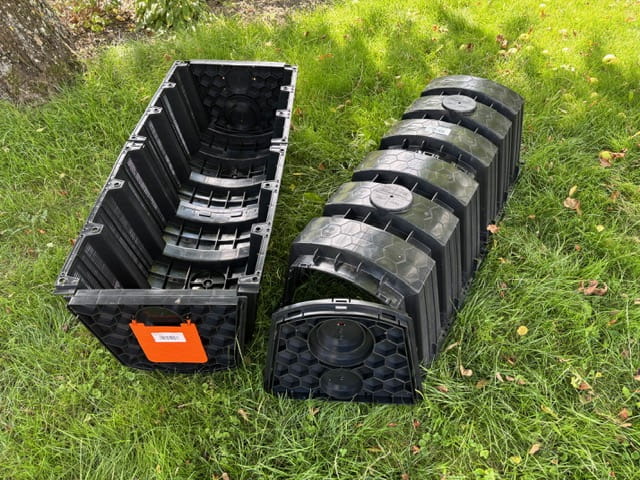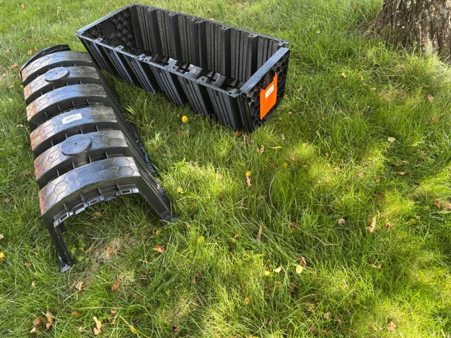 Tunel rozsączający wodę deszczową w gruncie.